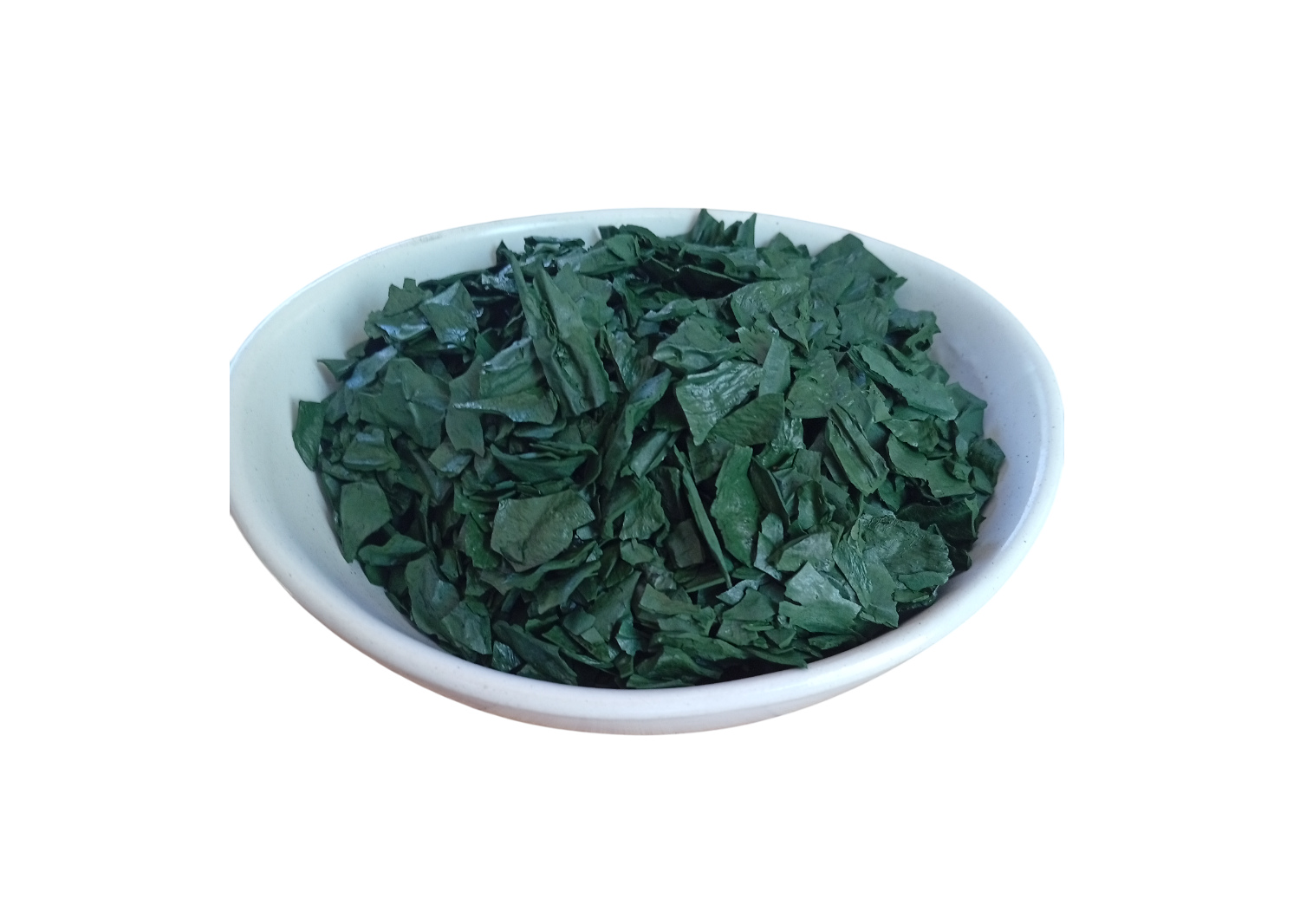 Alga espirulina en formato de crujientes copos, ideal para añadir espirulina a comidas ya cocinadas como ensaladas, arroz, legumbres, postres, etc.